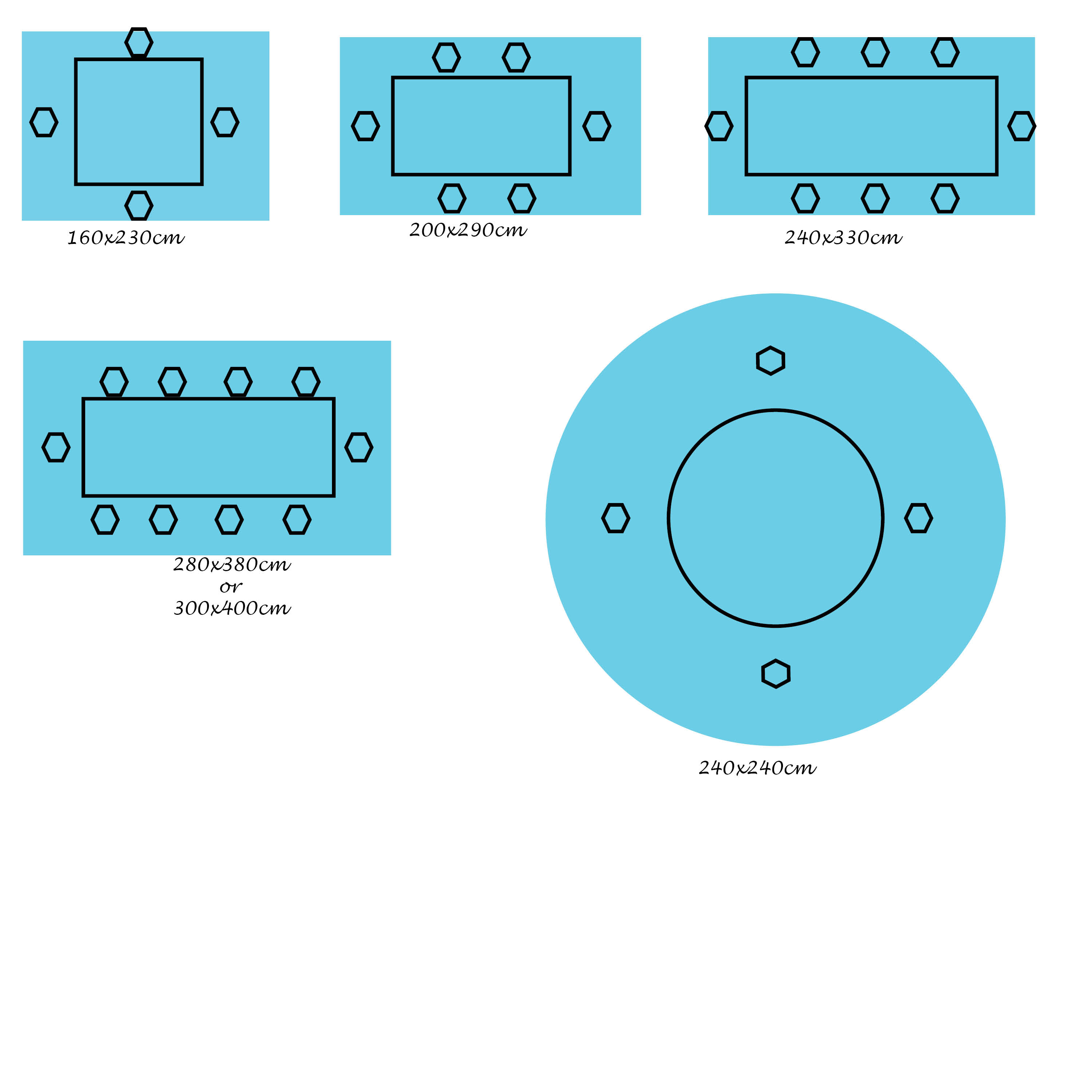 Scale and proportion is key when placing a rug in your dining room. As a rule, you want your rug to be large enough to accommodate all the dining chairs, even when they are pulled out from the table. We recommend your rug be large enough to extend around 60-70cm beyond your table.