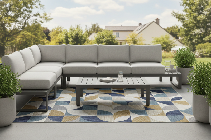 Why not do a bit of Alfresco dining in your own garden with our new Flora range. Designed with a Scandi and Mediterranean feel these rugs are the perfect addition to your garden. These easily maintained rugs are the perfect addition to indoor settings also. Use under dining tables as easily wiped clean or use in hall for higher traffic areas. With the added features of being weatherproof these rugs are sure to be a hit in your home or garden.