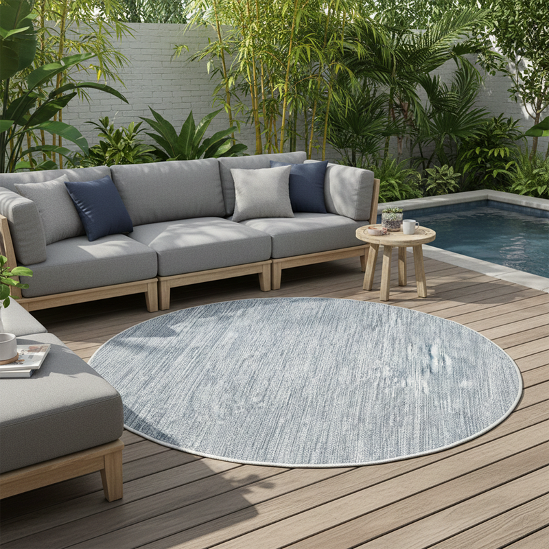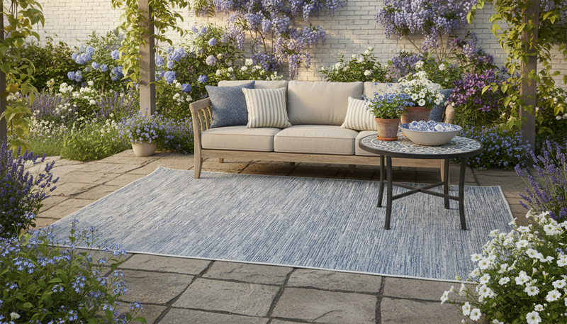 For high traffic, spill-risk areas like the dining area, we recommend a low-pile rug and easy-to-clean material like polypropylene for a rug.xt
