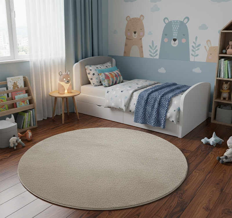 For those who don't want a large rug but still want a warm underfoot when getting out of bed, we recommend a round or runner rug to place at either side of the bed.