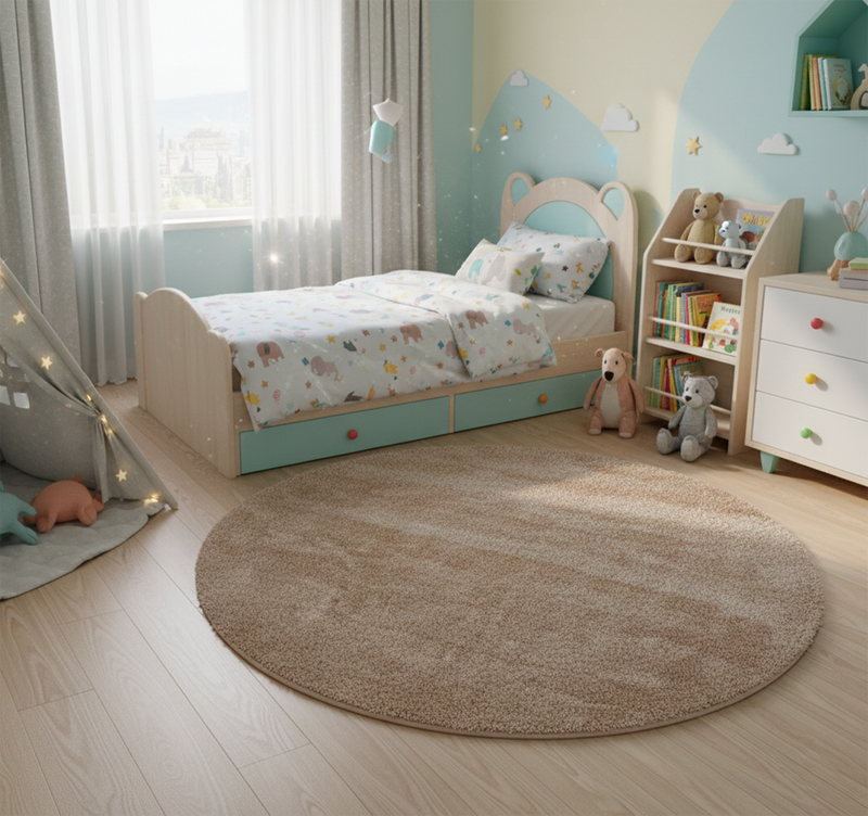 For those who don't want a large rug but still want a warm underfoot when getting out of bed, we recommend a round or runner rug to place at either side of the bed.