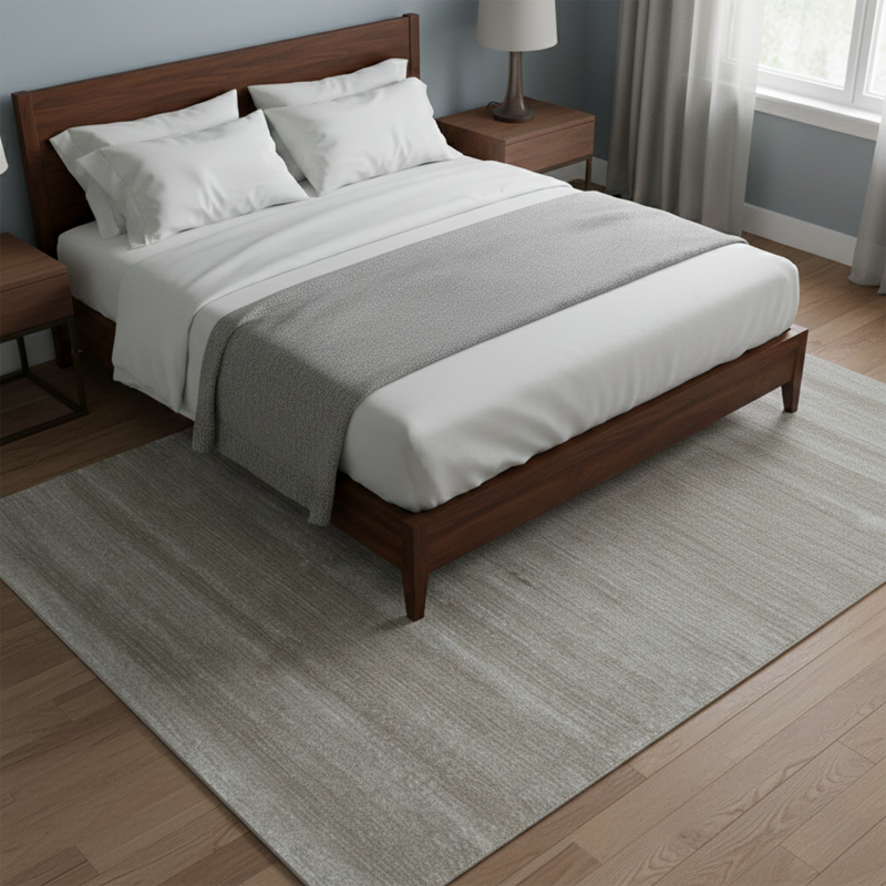 A rug in the bedroom is all about a warm and comfortable underfoot, especially for those with hard flooring! For those wanting a larger rug for the room, we recommend a rectangular rug that sits right under the lower end of the bed and extends at least 50cm beyond the sides of the bed (depending on the size of your bedroom).